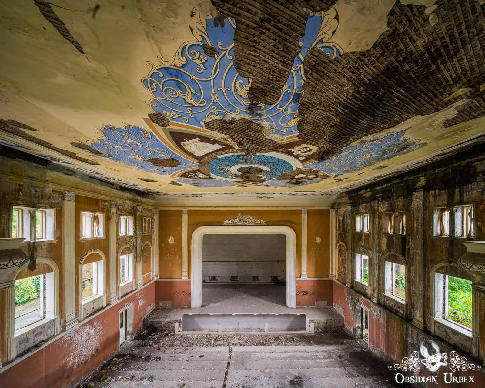 An unexpectedly grand building in a small mountain town in Georgia. It is a relic of the Soviet era, built in the 1950s. This was a community space for local agricultural workers as a community and entertainment venue.